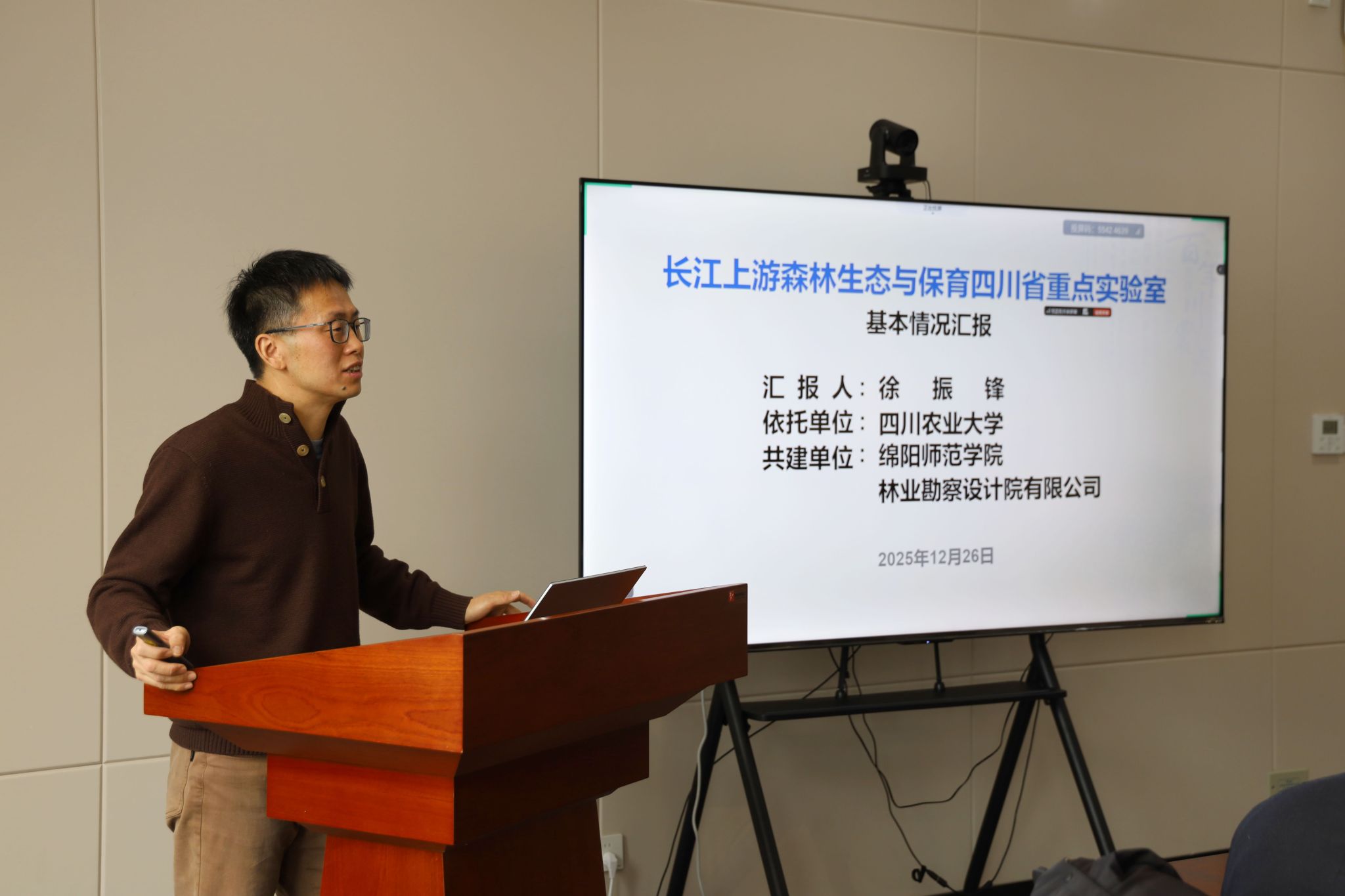 林学院院长潘远智教授介绍了学术委员会与会专家。科技处处长田孟良教授代表依托单位致辞。基地与实验室管理处处长陈礼清为共建单位授牌。实验室主任徐振锋教授为学术委员会委员颁发聘书,并从实验室定位、研究方向、2025年建设成效及开放基金申报等方面进行了汇报。