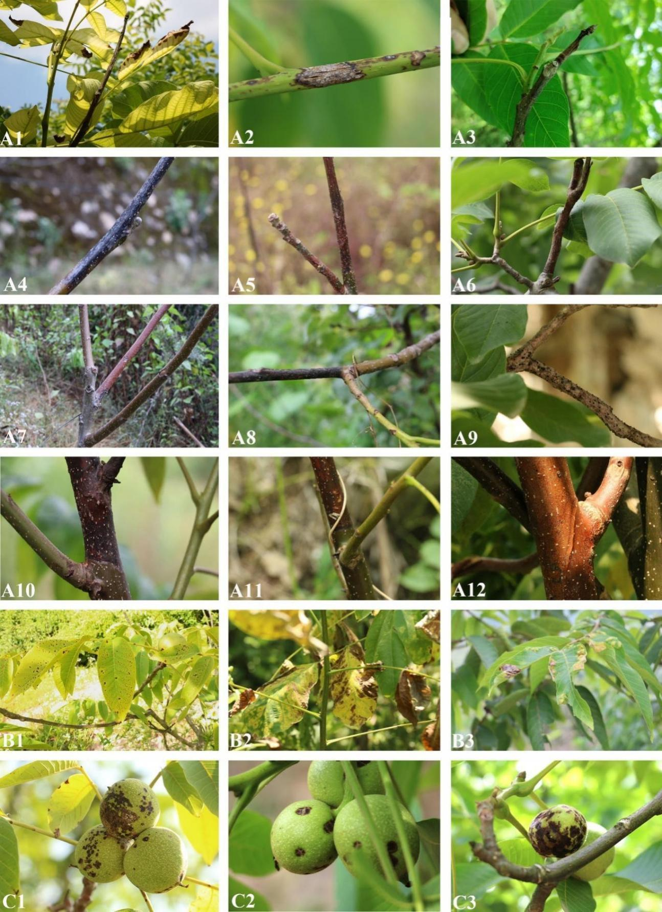 核桃,又称胡桃,主要指胡桃科(Juglandaceae)中胡桃属(Juglans)与山核桃属(Carya)的植物成员。截至目前,全球共记录核桃类植物约60个有效种,其中包括5个变种和10个杂交种。核桃作为我国战略性油料树种,种植面积全球领先,现已成为全国最大的坚果经济林树种,主要分布于西南、西北及华北等多个地区,以胡桃(J. regia)和泡核桃(J. sigillata)为主栽品种。由于各地核桃林经营管理方式不一、立地条件差异显著,核桃病害在我国时有发生。不同地区、寄主类型及发病部位的差异,导致病害的发生特征和类型存在明显区域性和复杂性。其中,真菌性病害最为常见,种类也较为多样。然而,目前相关基础数据仍较薄弱,存在病害发生规律不清、病原物种不明、鉴定依据不准确以及模式标本缺失等问题,严重制约了核桃林的科学经营与有效管理,已成为当前面临的重要挑战之一。