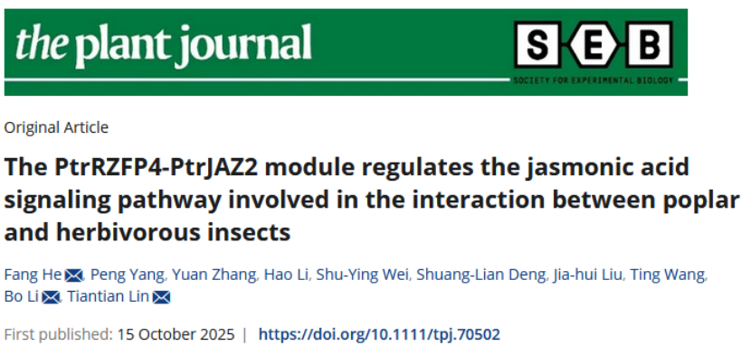 近日,重点实验室林木遗传育种团队在植物学知名期刊《The Plant Journal》(影响因子7.2)上发表了最新研究成果,系统揭示了一种新的杨树抗虫分子机制。该研究为理解植物与昆虫互作的复杂性提供了全新视角,并为通过基因工程手段培育抗虫林木品种奠定了重要理论基础。