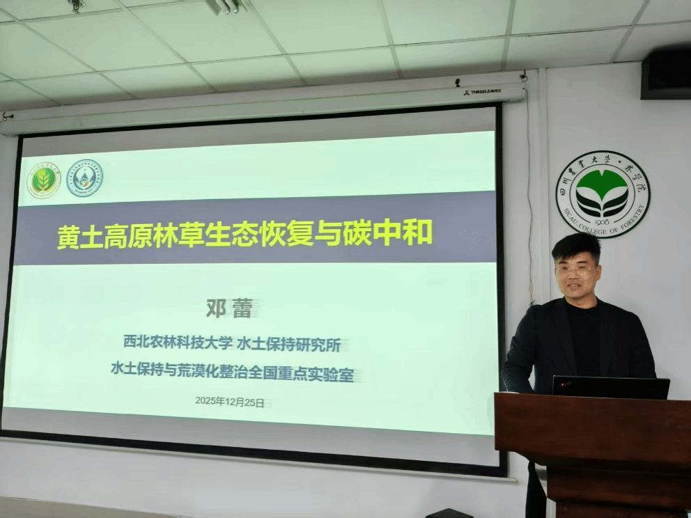 12月25日下午,西北农林科技大学邓蕾研究员应实验室邀请,做客“林听新声”大讲堂,在成都校区第五教学楼306会议室为师生带来题为“黄土高原林草生态与碳中和”的学术报告。报告会由实验室主任徐振锋教授主持,吸引了50余名师生参加。